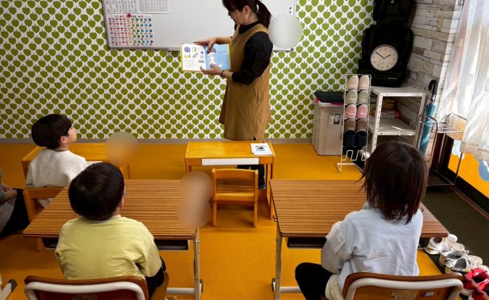 こんにちは✨ふうせんです🎈 4月から1年生になる年長さん組は絵カードを使って『反対言葉』や『どこが・・・