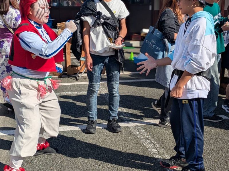 今回は、『鬼滅の刃』の仮装をした職員が子ども達を迎えています。ジャンケンやハイタッチ、自己紹介、家族紹介、写真を撮るの5個にミッションに挑戦しています。
