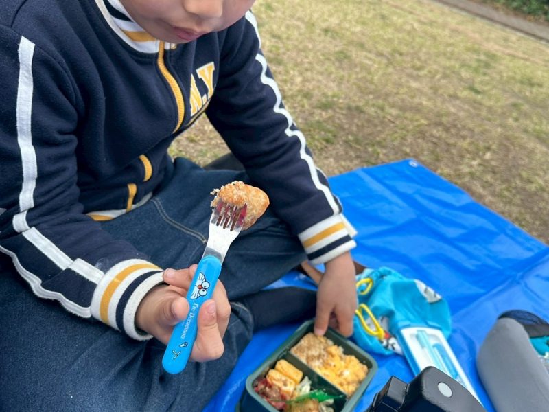 手作りお弁当を笑顔でほおばりながら食べ、ごちそうさまの後には公園の遊具で元気いっぱいに遊びました!