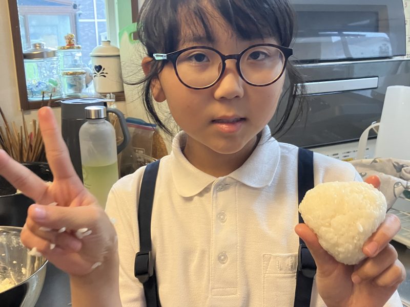 自分で頑張って握った塩おにぎりをとても美味しそうに食べていました♪