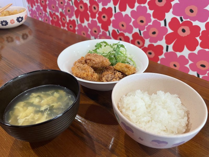 ⚫︎唐揚げ ⚫︎玉子スープ ⚫︎ごはん ⚫︎チキンナゲット⚫︎サラダ ⚫︎みかん ⚫︎さつまいもの素揚げ