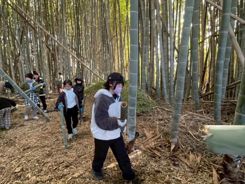 若竹を切って運び、削って整え、据えつけて、飾り付けまで…