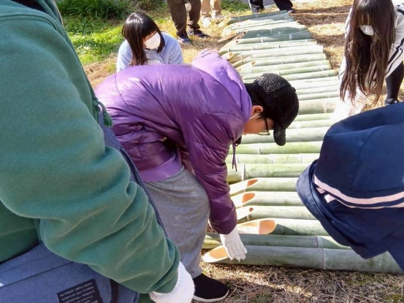 若竹を切って運び、削って整え、据えつけて、飾り付けまで… とても美しく出来上がりました!